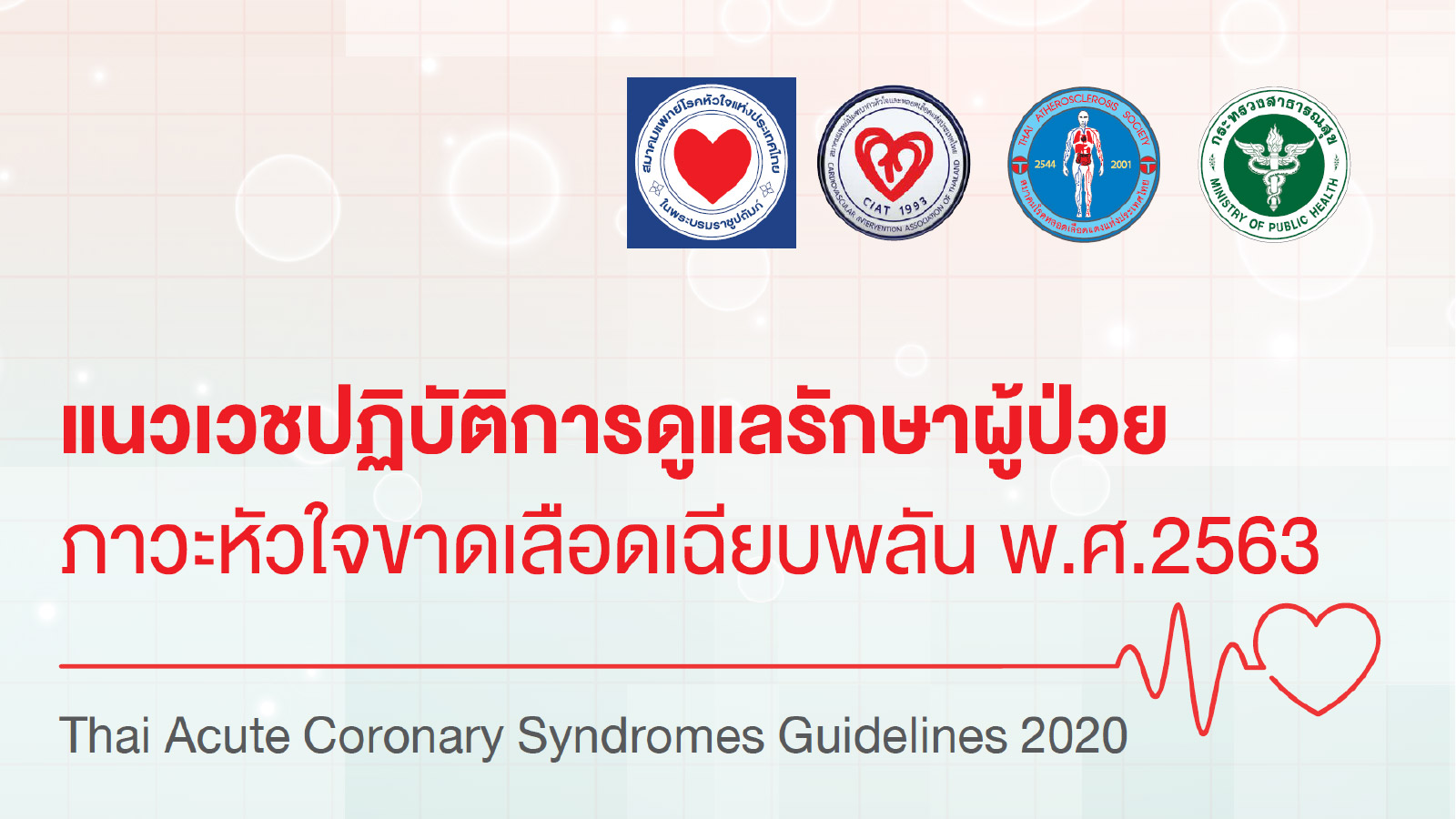 คณะกรรมการพัฒนาระบบบริการสุขภาพ สาขาโรคหัวใจ (service plan) กระทรวงสาธารณสุข ร่วมกับ สมาคมแพทย์โรคหัวใจแห่งประเทศไทย ในพระบรมราชูปถัมภ์ สมาคมแพทย์มัณฑนากรหัวใจและหลอดเลือดแห่งประเทศไทย และสมาคมโรคหลอดเลือดแดงแห่งประเทศไทย จึงร่วมกันออกแนวเวชปฏิบัติภาวะหัวใจขาดเลือดเฉียบพลัน พ.ศ. 2563 (Thai Acute Coronary Syndromes Guidelines 2020) นี้ขึ้น